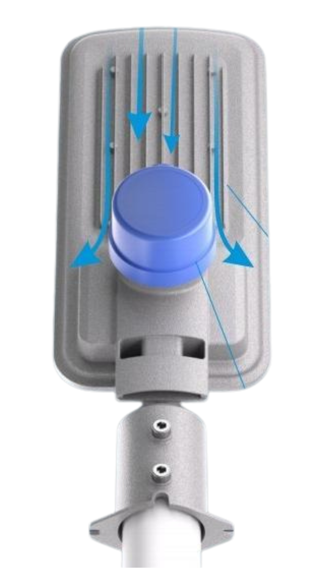 Tiene una base ajustable más versátil para montaje en todo tipo de poste, permitiendo también, seleccionar los grados de inclinación de la luminaria para postes particulares.